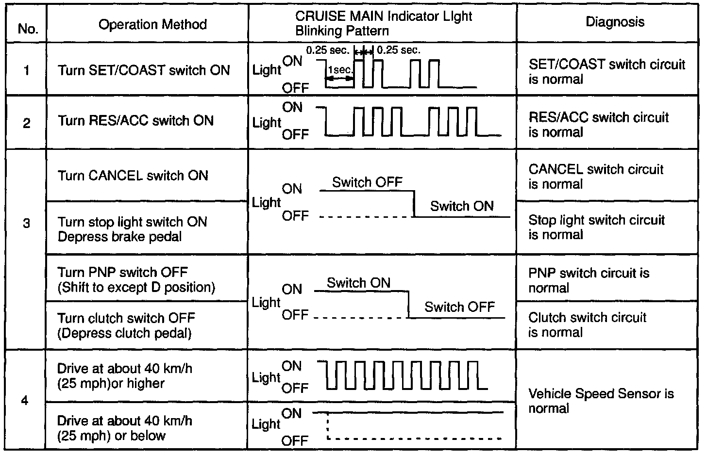 (f) Read the blinking pattern of the CRUISE MAIN indicator light.