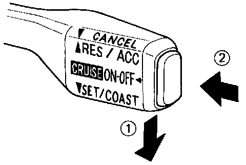 2. Turn the control switch to SET/COAST position and hold it down (1).