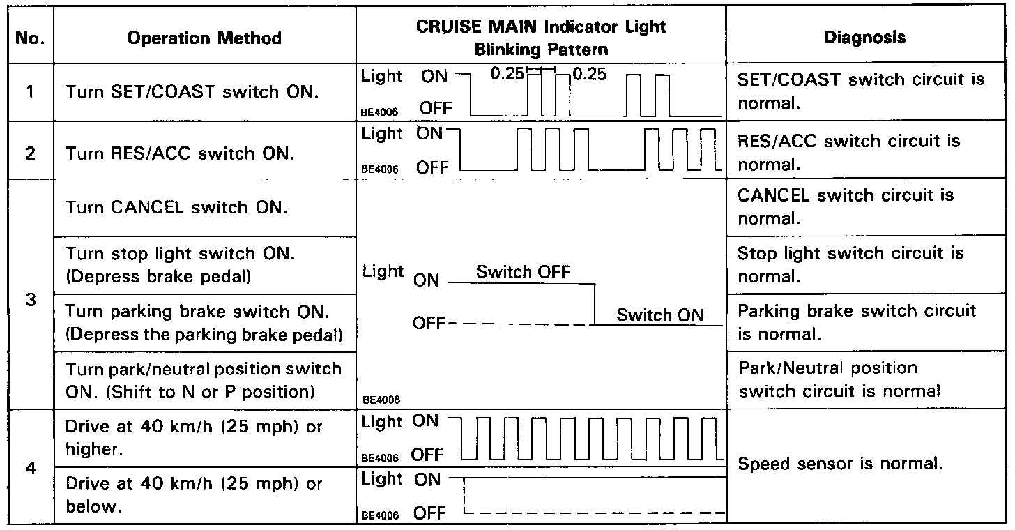4. Check that the CRUISE MAIN indicator light blinks twice repeatedly.