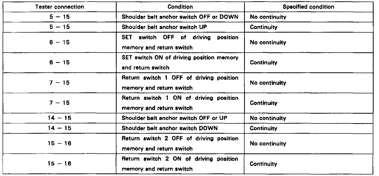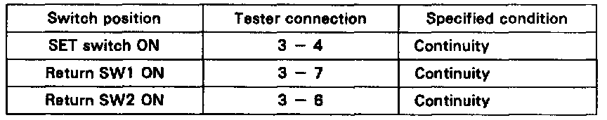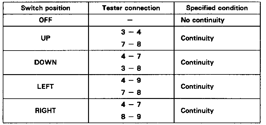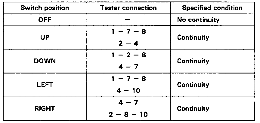 If continuity is not as specified. replace the switch. If continuity is as specified. inspect the switch circuit.