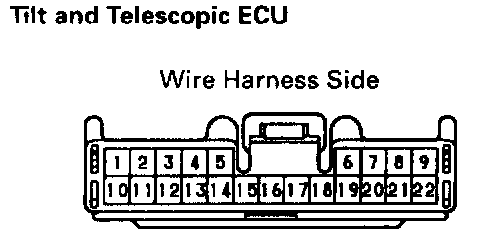 Disconnect the connector from the tilt and telescopic ECU and inspect the connector on wire harness side. as shown.