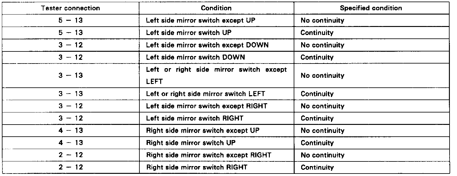 MIRROR SWITCH INSPECTION1. INSPECT SWITCH CONTINUITY