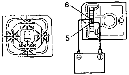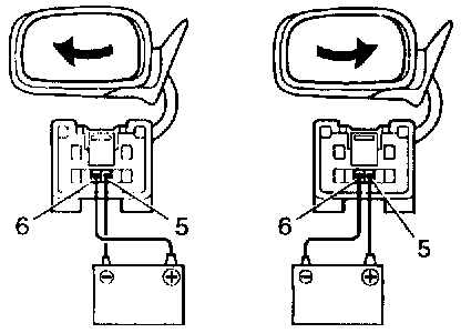 a. Connect the positive (+) lead from the battery to terminal 6 and negative (-) lead to terminal 5, then check that the mirror turns to left side.