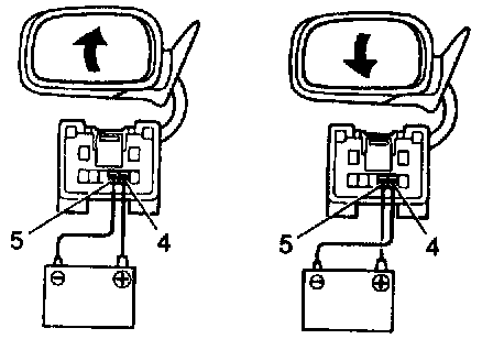 c. Connect the positive (+) lead from the battery to terminal 4 and negative (-) lead to terminal 5, then check that the mirror turns upward.
