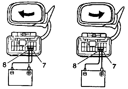 a. Connect the positive (+) lead from the battery to terminal 8 and negative (-) lead to terminal 7, then check that the mirror turns to left side.