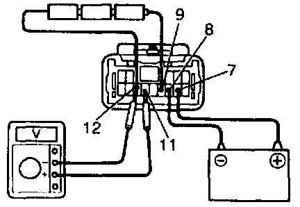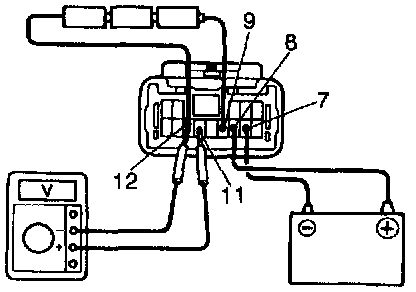 f. Connect the positive (+) lead from the voltmeter to terminal 11 and negative (-) lead to terminal 12.
