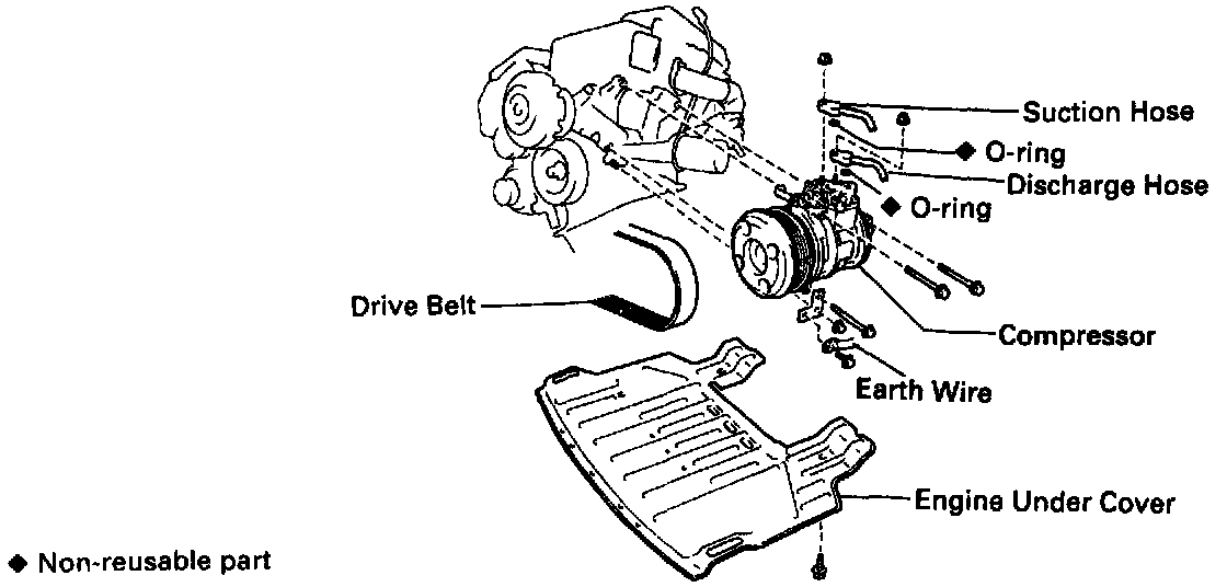 5. REMOVE DISCHARGE HOSE AND SUCTION HOSE FROM COMPRESSOR