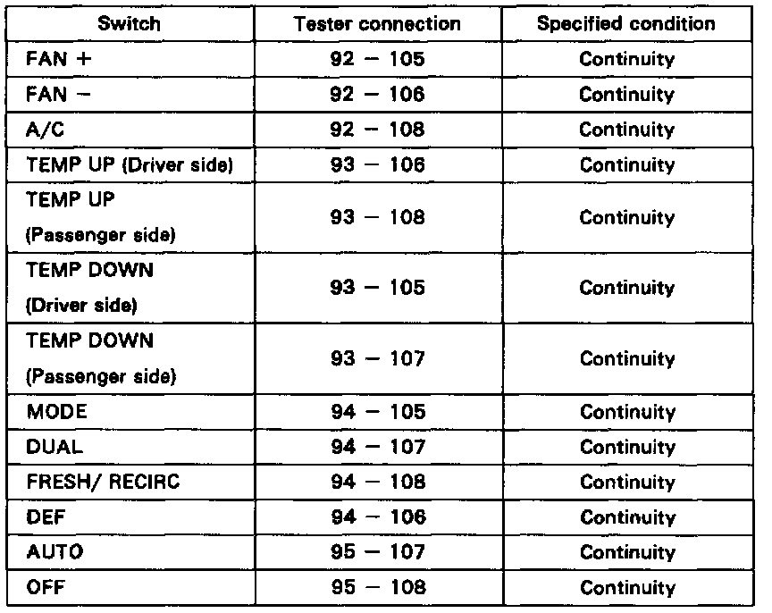 2. INSPECT SWITCH OPERATION (A/C CONTROL PANEL)