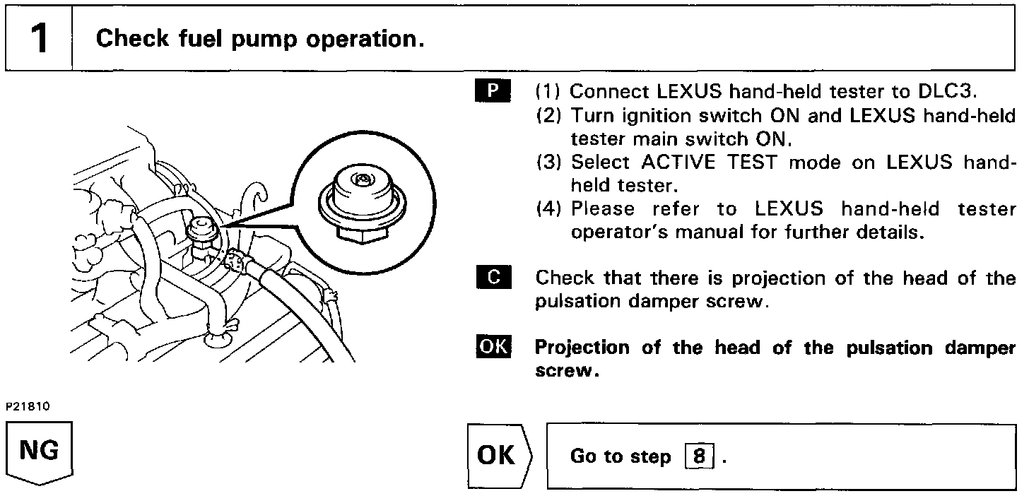 After the engine starts, during idling or light loads, since Tr2 goes ON, power is supplied to the fuel pump via the fuel pump resistor.