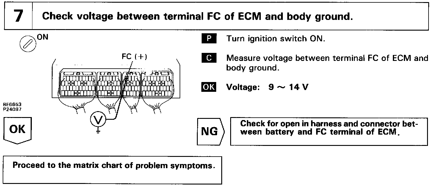 In the diagram above, when the engine is cranked, current flows from terminal ST of the ignition switch to the starter relay coil and also current flows to terminal STA of ECM (STA signal).