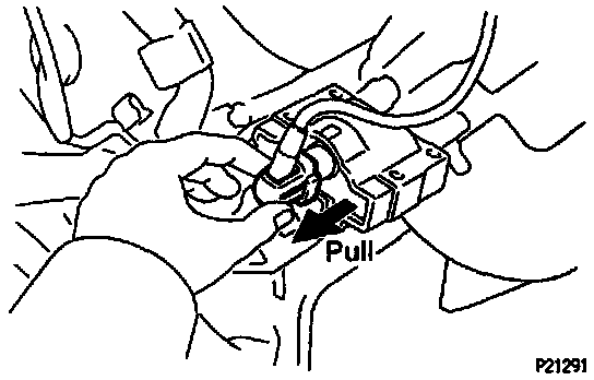 (b) Remove the cord clamp from the front high-tension cord clamp.