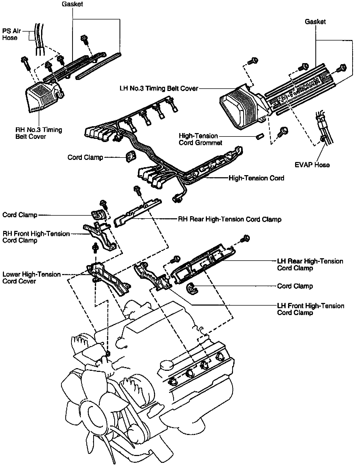 6. REMOVE LH HIGH-TENSION CORD CLAMPS