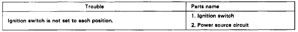 The table below will be useful for you in troubleshooting these electrical problems. The most likely causes of the malfunction are shown in the order of their probability. Inspect each part in the order shown, and replace the part when it is found to be faulty.