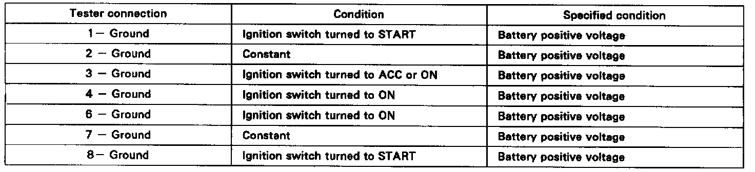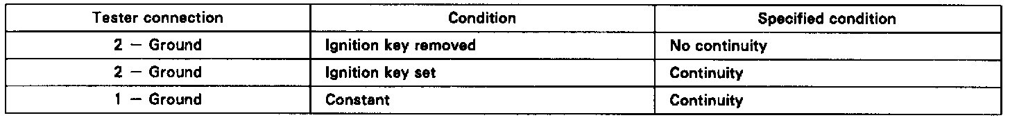 If circuit is not as specified, inspect the switch or wire harness.