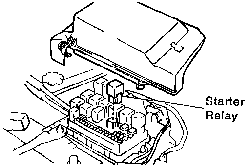 LOCATION: In the engine compartment relay box. Remove the relay box cover and starter relay.