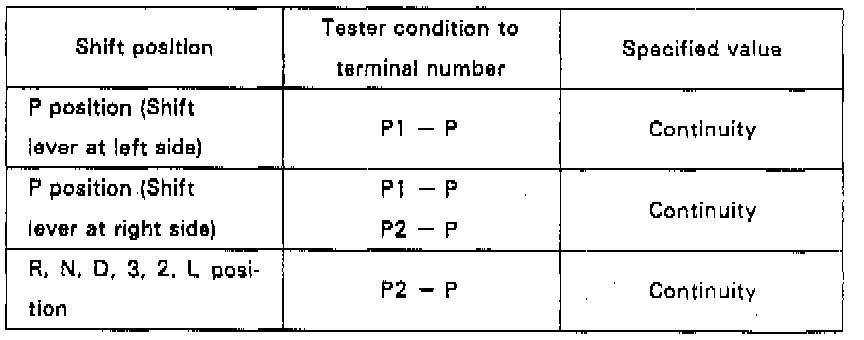 Inspect shift lock control switch Inspect that there is continuity between each terminal.