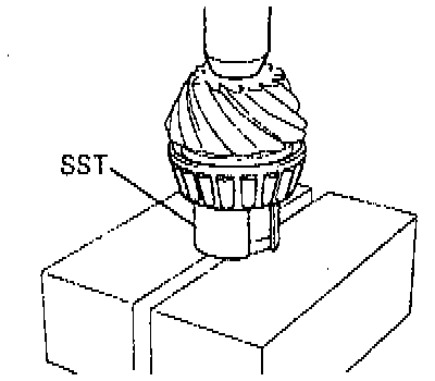 7. Install rear bearing to drive pinion. Using SST 09710 - 30021 (09710 - 03091) and a press, install the rear bearing.