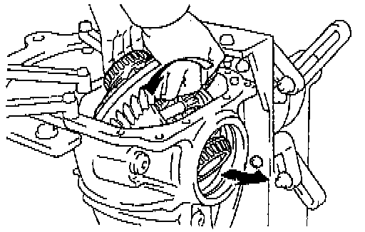 d. Rotate the ring gear back and forth to settle the side bearings down.