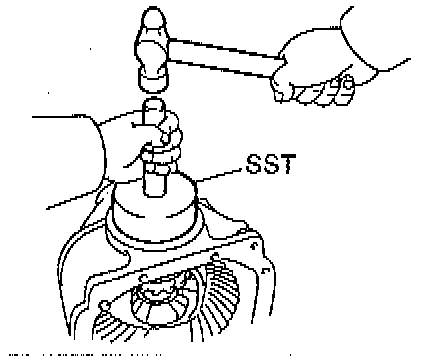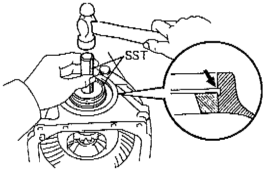 25. Install side oil seals using SST 09223 - 5601 0 and a hammer, install 2 new side oil seals until it is flush with the carrier end surface.