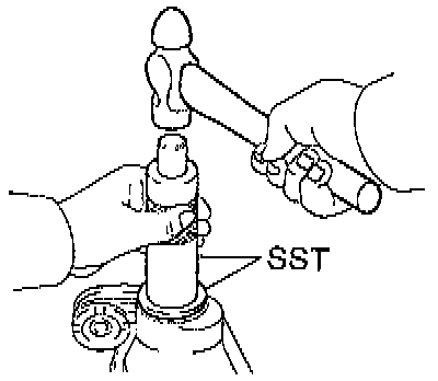 b. Using SST 09229 - 55010, 09330 - 00021, tighten the nut to 147 Nm (108 ft. lbs.)