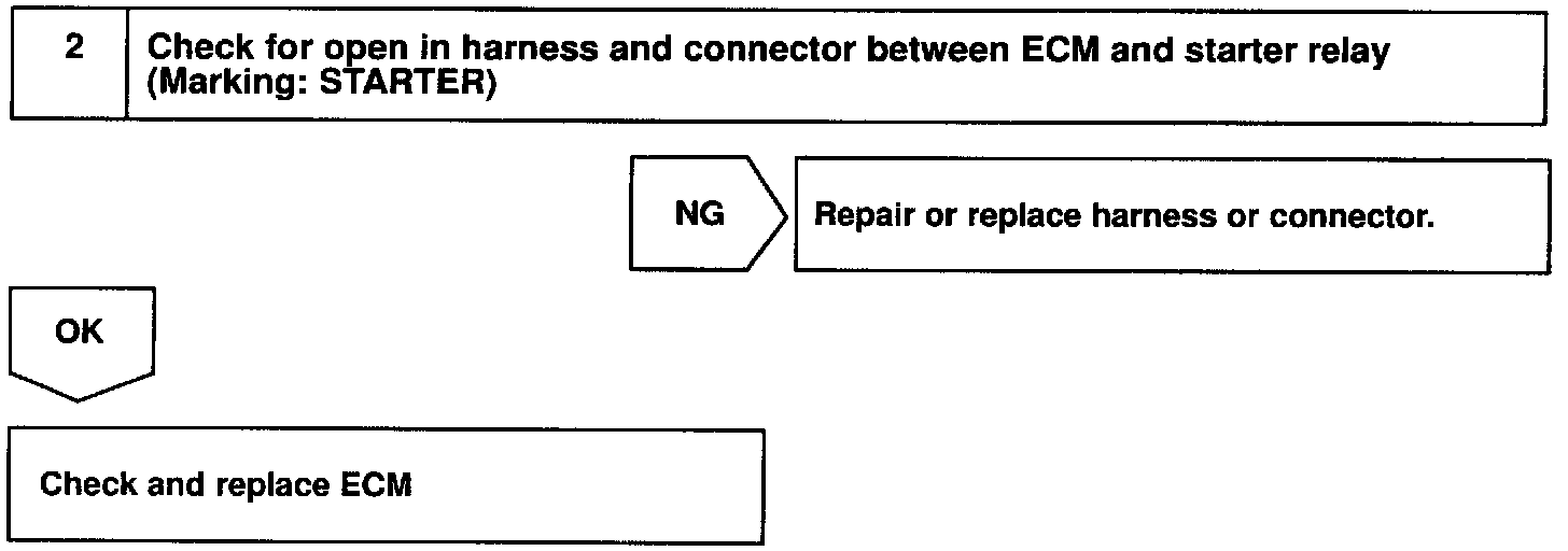 CIRCUIT DESCRIPTIONWhen the engine is cranked, the intake air flow is slow, so fuel vaporization is poor. A rich mixture is therefore necessary in order to achieve good startability. While the engine is being cranked, the battery positive voltage is applied to terminal STA of the ECM. The starter signal id mainly used to increase the fuel injection volume for the starting injection control and after-start injection control.
