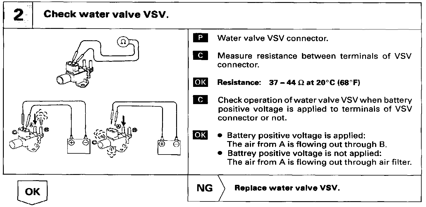 This turns the water valve VSV ON so that engine coolant flows to the heater core.