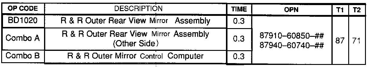 ^ Replace the Outer Mirror Control computer and Outer Mirror Assembly on vehicles built prior to and including VIN JT6HT00W # X0025687.