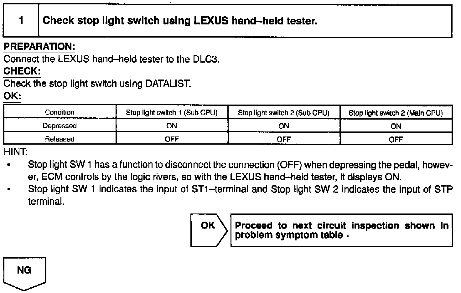 HINT: In case of using the LEXUS hand-held tester, start the inspection from step 1 and in case of not using the LEXUS hand-held tester, start from step 2.