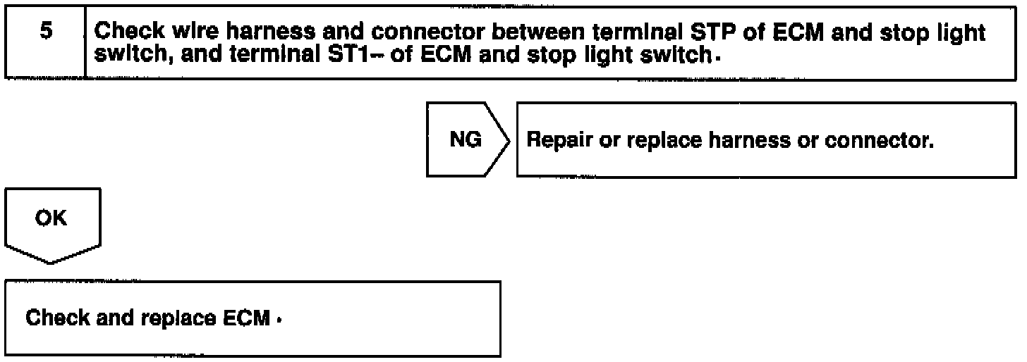 If the harness connected to terminal STP has an open circuit, terminal STP will have battery positive voltage and the cruise control will be turned OFF.