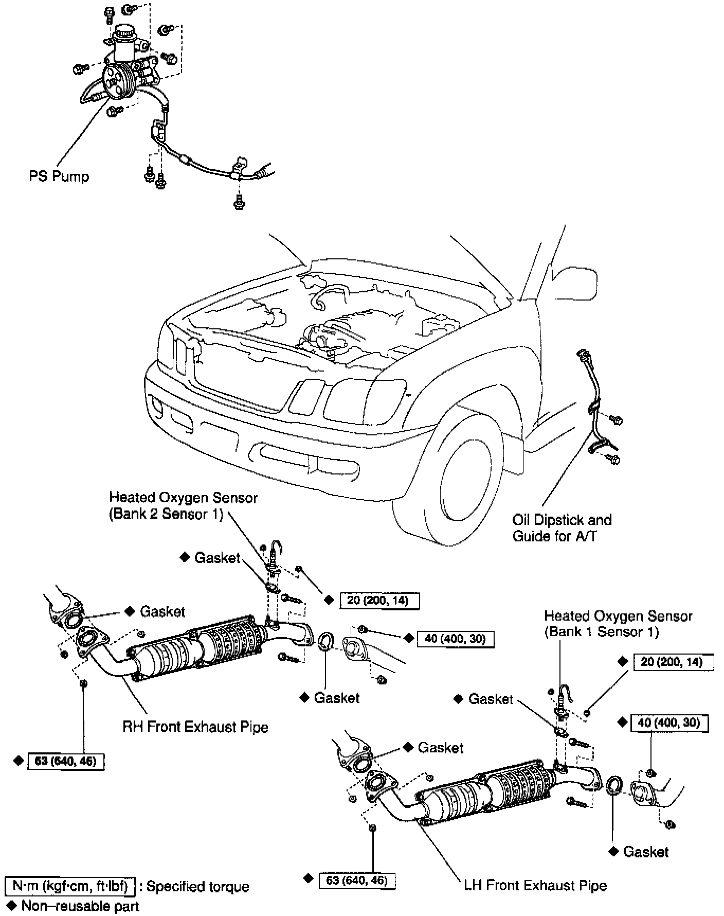 EXHAUST PIPE, PS PUMP AND HO2S