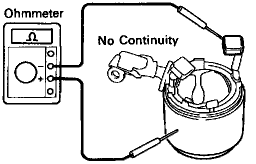 Using an ohmmeter, check that there is no continuity between the positive (+) and negative (-) brush holders.
