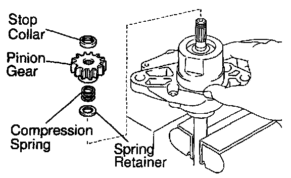Hold the starter clutch and rotate the pinion gear counterclockwise, and check that it turns freely. Try to rotate the pinion gear clockwise and check that it locks.