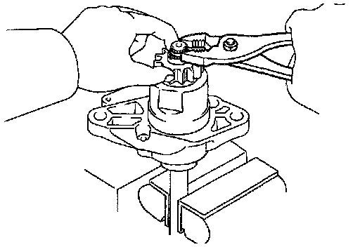 1. Mount a brass bar in a vise, and install the starter housing and clutch assembly to the brass bar.