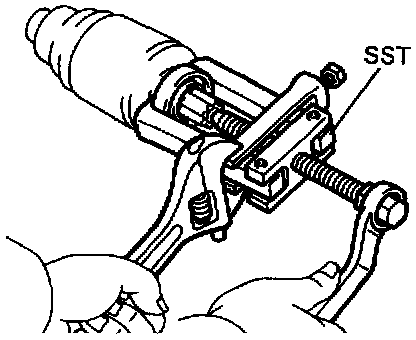 b. Check that the starter rotates smoothly and steadily with the pinion gear moving out. Check that the ammeter reads the specified current.