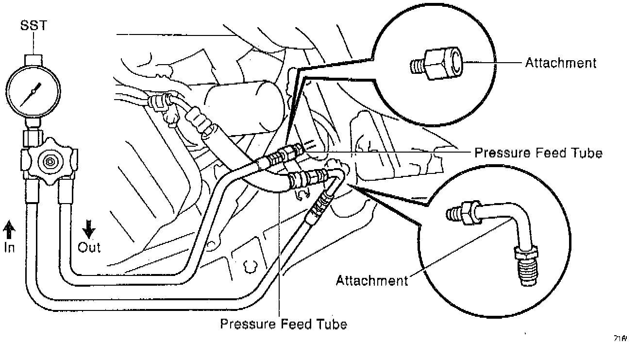 g. With the engine idling, close the valve of the SST and observe the reading on the SST
