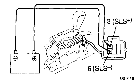 c. Apply the battery voltage between terminals 3 and 6. At this time, confirm that the solenoid operates.