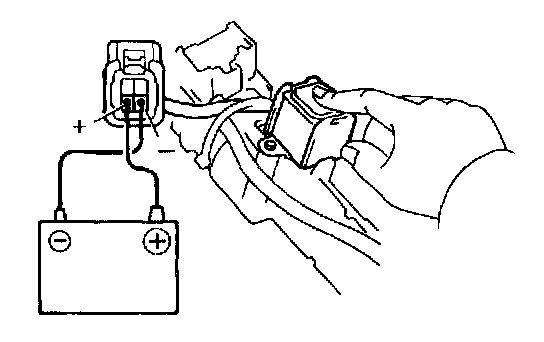 c. Touch the solenoid with your finger and check that the solenoid operation can be felt when battery voltage is applied intermittently to terminals 3 and 4.