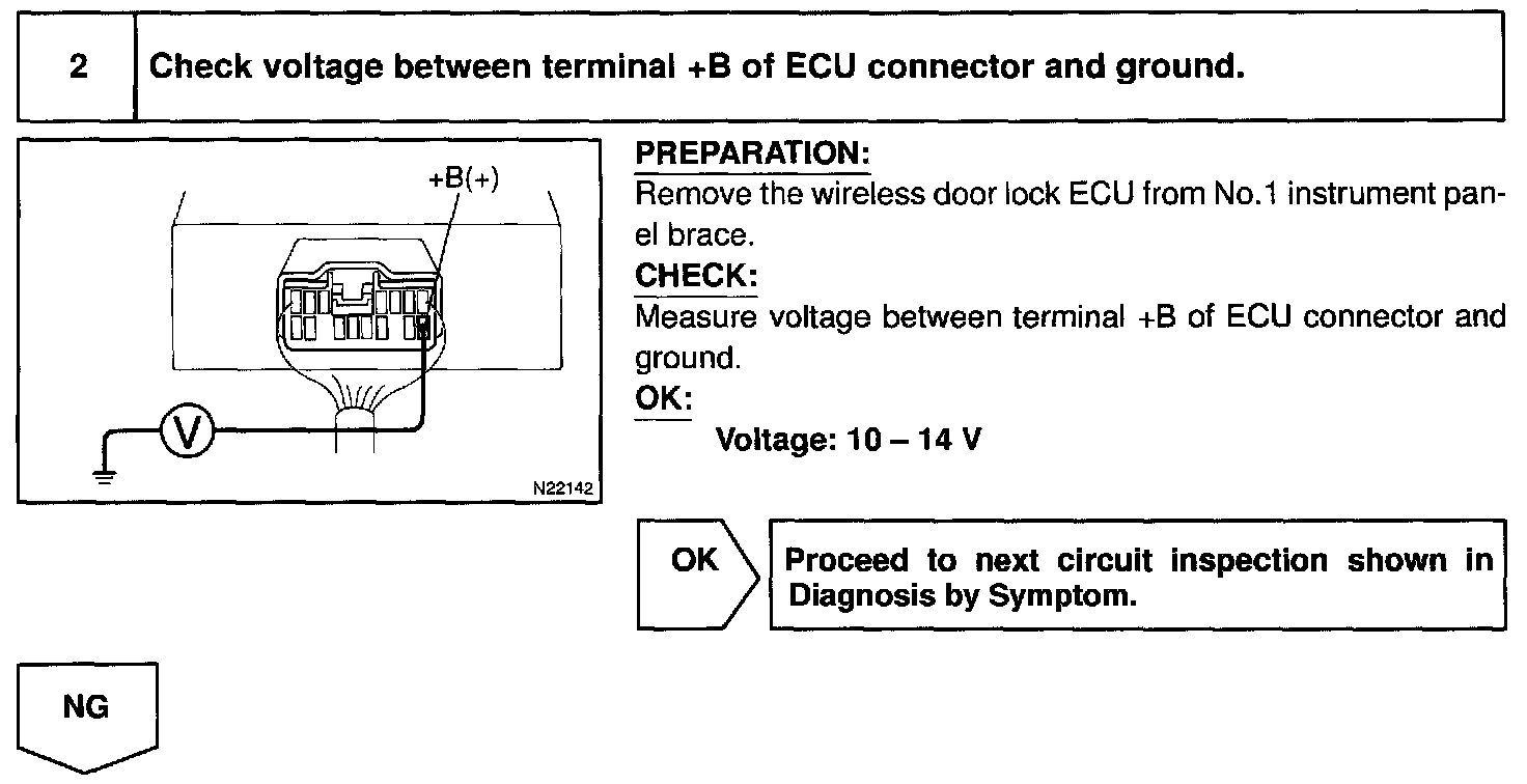 Battery positive voltage is always applied to the terminal +B of the wireless door lock ECU.