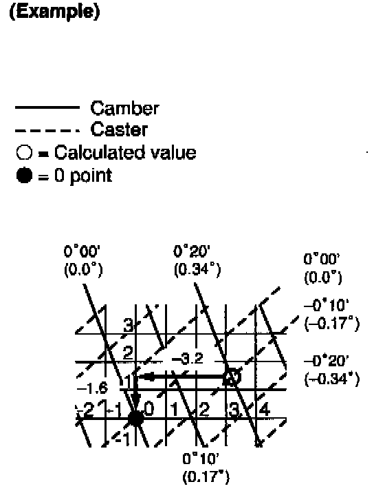 Caster: 3°05'- 3°15' = -0°10'