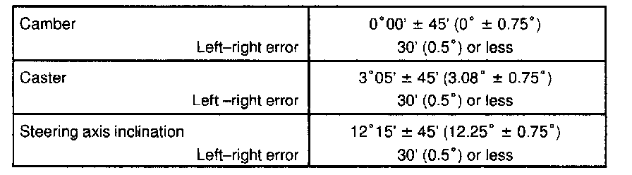 If the steering axis inclination is not within the specification, after the camber and caster have been correctly adjusted, recheck the steering knuckle front wheel for bearing or looseness.