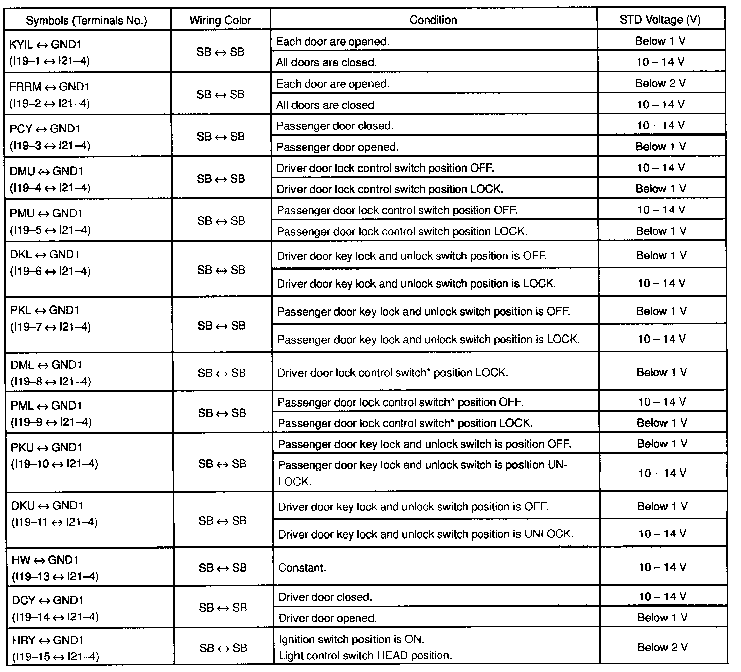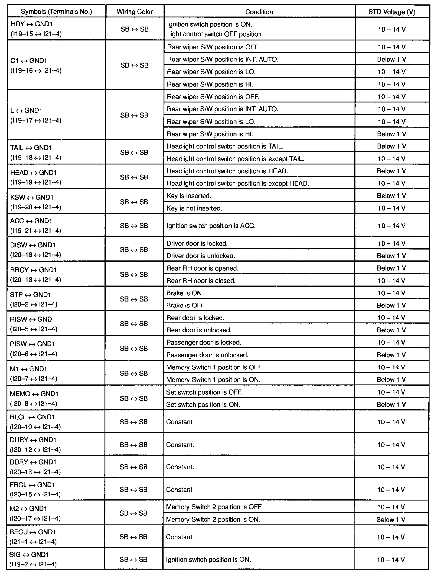 Pinout Values and Diagnostic Parameters