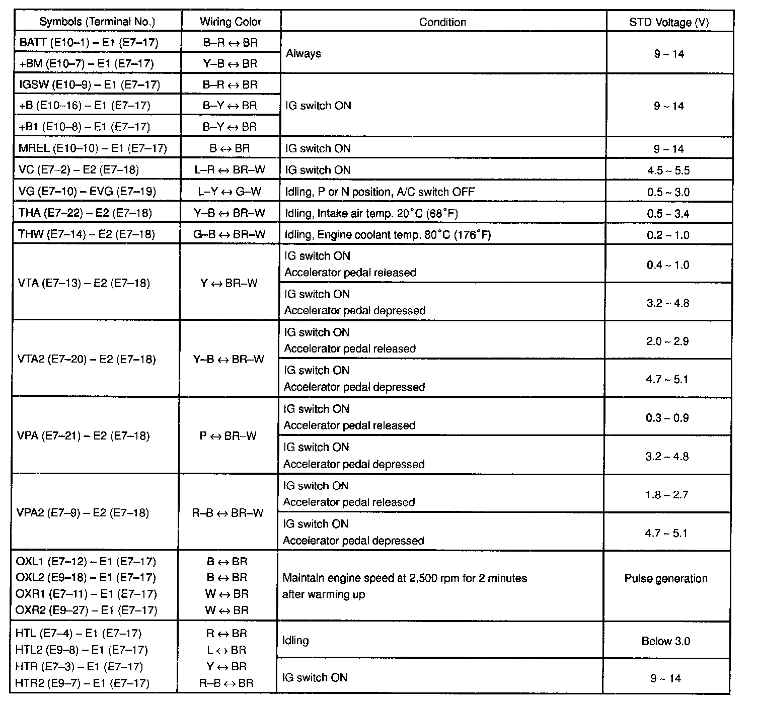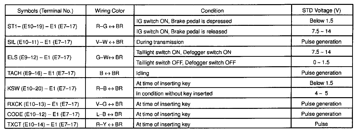 Pinout Values and Diagnostic Parameters