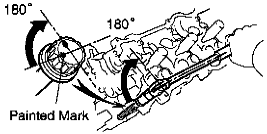 d. Mark the front of the cylinder head bolt head with paint.