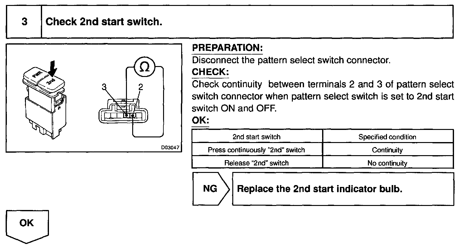 Pattern Select Switch Circuit (2ND Start Switch) & 2ND Start Switch Indicator Light CircuitCIRCUIT DESCRIPTION