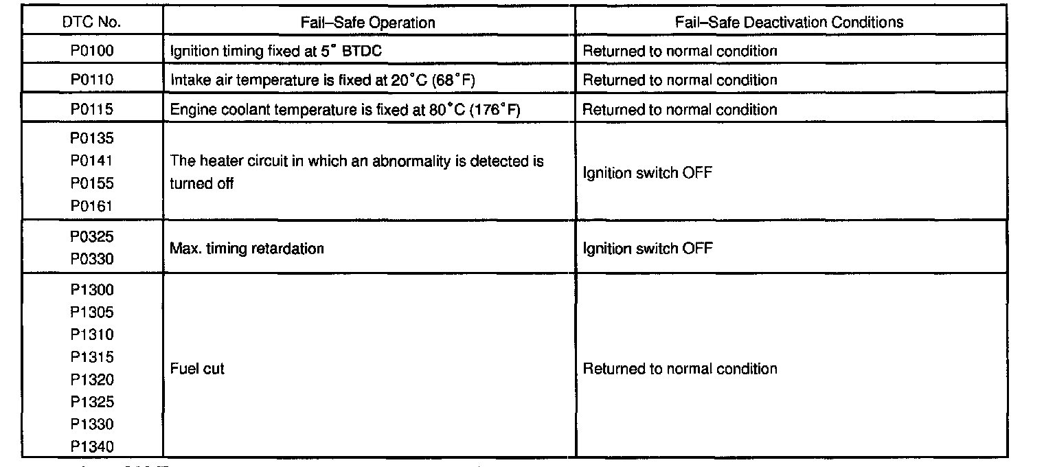 If any of the codes shown is recorded, the ECM enters fail-safe mode.