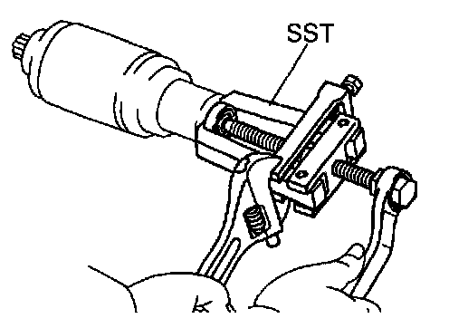 c. Using a screwdriver, hold the spring back and disconnect the brush from the brush holder. Disconnect the 4 brushes, and remove the brush holder.