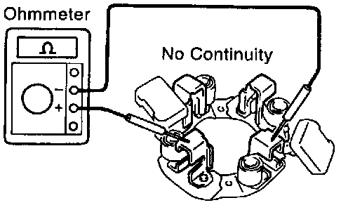 Using an ohmmeter, check that there is no continuity between the positive (+) and negative (-) brush holders.