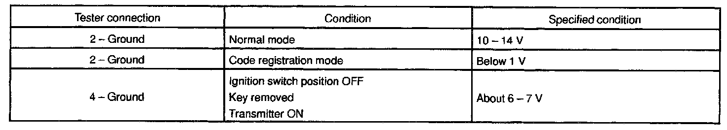 d. In the location where is approx. 1 M away from driver's outside handle in the right direction, and check the transmitter operation when pressing transmission switch on the side of the transmitter body.
