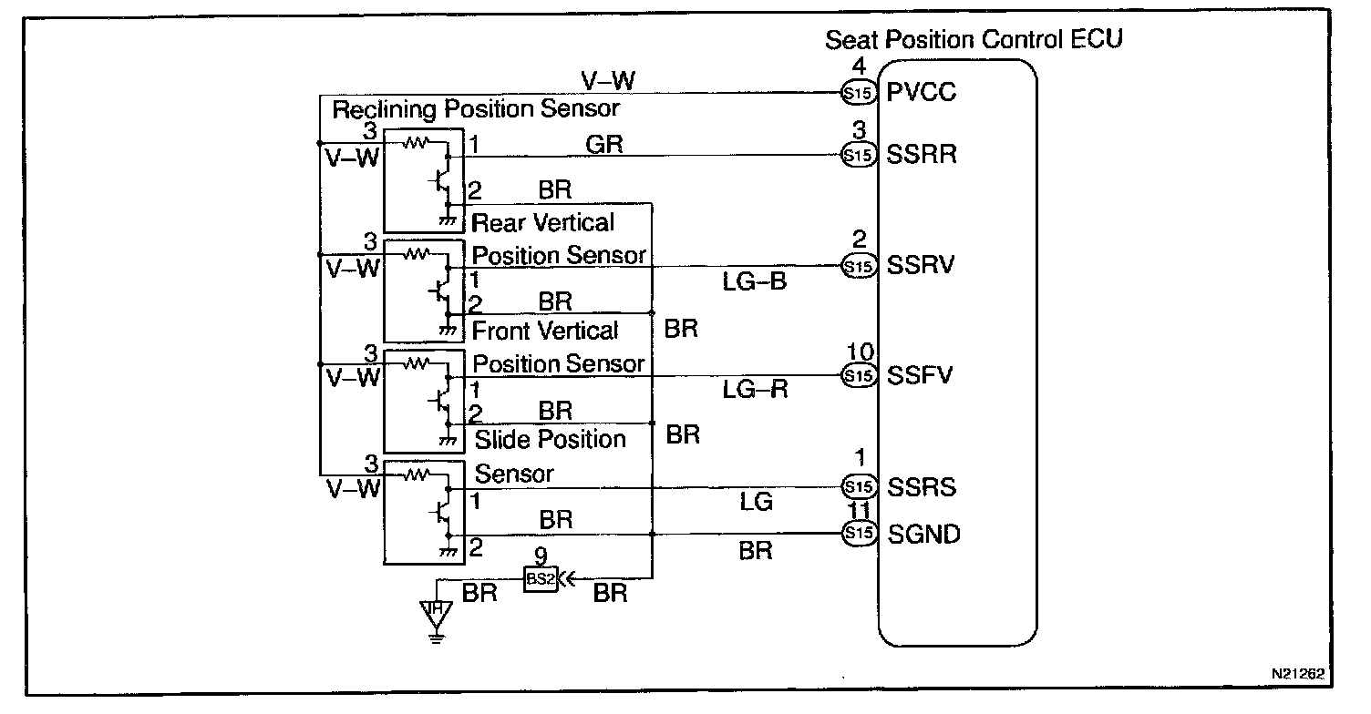 This circuit provides power to the slide, front vertical and reclining position sensors.