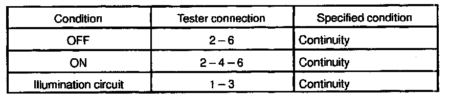 If continuity is not as specified, replace the switch or bulb.